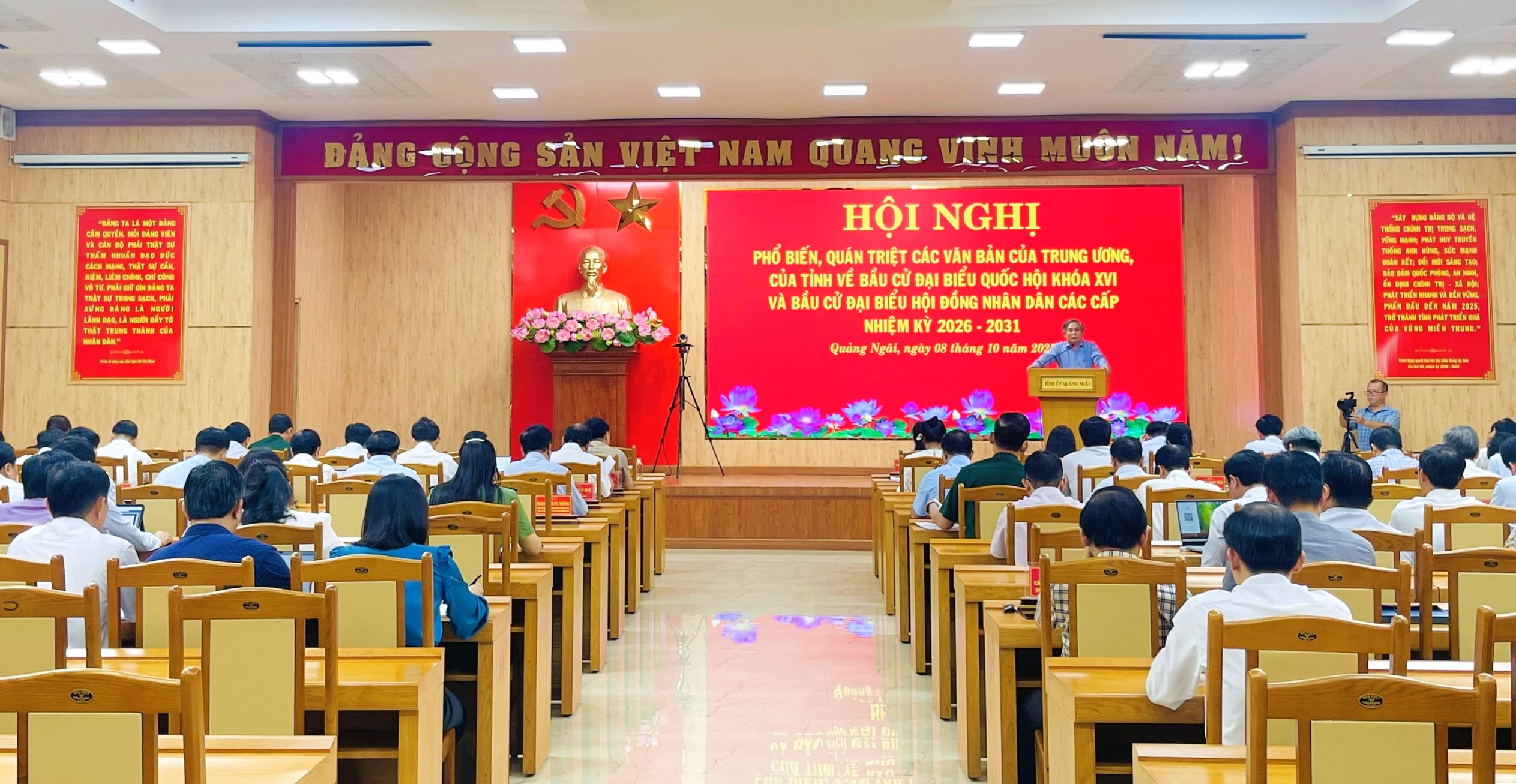 Chiều 08-10, Ban Thường vụ Tỉnh ủy tổ chức Hội nghị phổ biến, quán triệt các văn bản của Trung ương, của tỉnh về bầu cử đại biểu Quốc hội khóa XVI và bầu cử đại biểu HĐND các cấp nhiệm kỳ 2026-2031. Dự Hội nghị có Phó Bí thư Tỉnh ủy Đinh Thị Hồng Minh; Phó Chủ tịch Thường trực HĐND tỉnh Nguyễn Cao Phúc; các ủy viên Ban Thường vụ, Ban Chấp hành Đảng bộ tỉnh nhiệm kỳ 2025- 2030 và lãnh đạo các xã, phường, đặc khu.