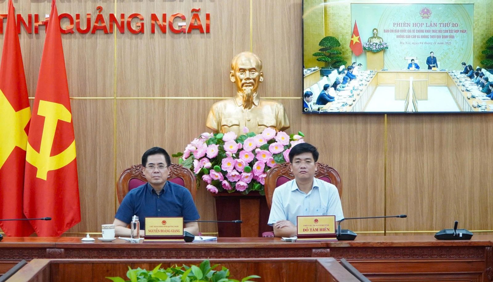 Chiều 04-11, Thủ tướng Chính phủ Phạm Minh Chính chủ trì phiên lần thứ 20 của Ban Chỉ đạo Quốc gia về chống khai thác hải sản bất hợp pháp, không báo cáo, không theo quy định (IUU). Tham dự tại điểm cầu Quảng Ngãi có Chủ tịch UBND tỉnh Nguyễn Hoàng Giang, Phó Chủ tịch UBND tỉnh Đỗ Tâm Hiển, lãnh đạo các sở, ngành, địa phương ven biển.