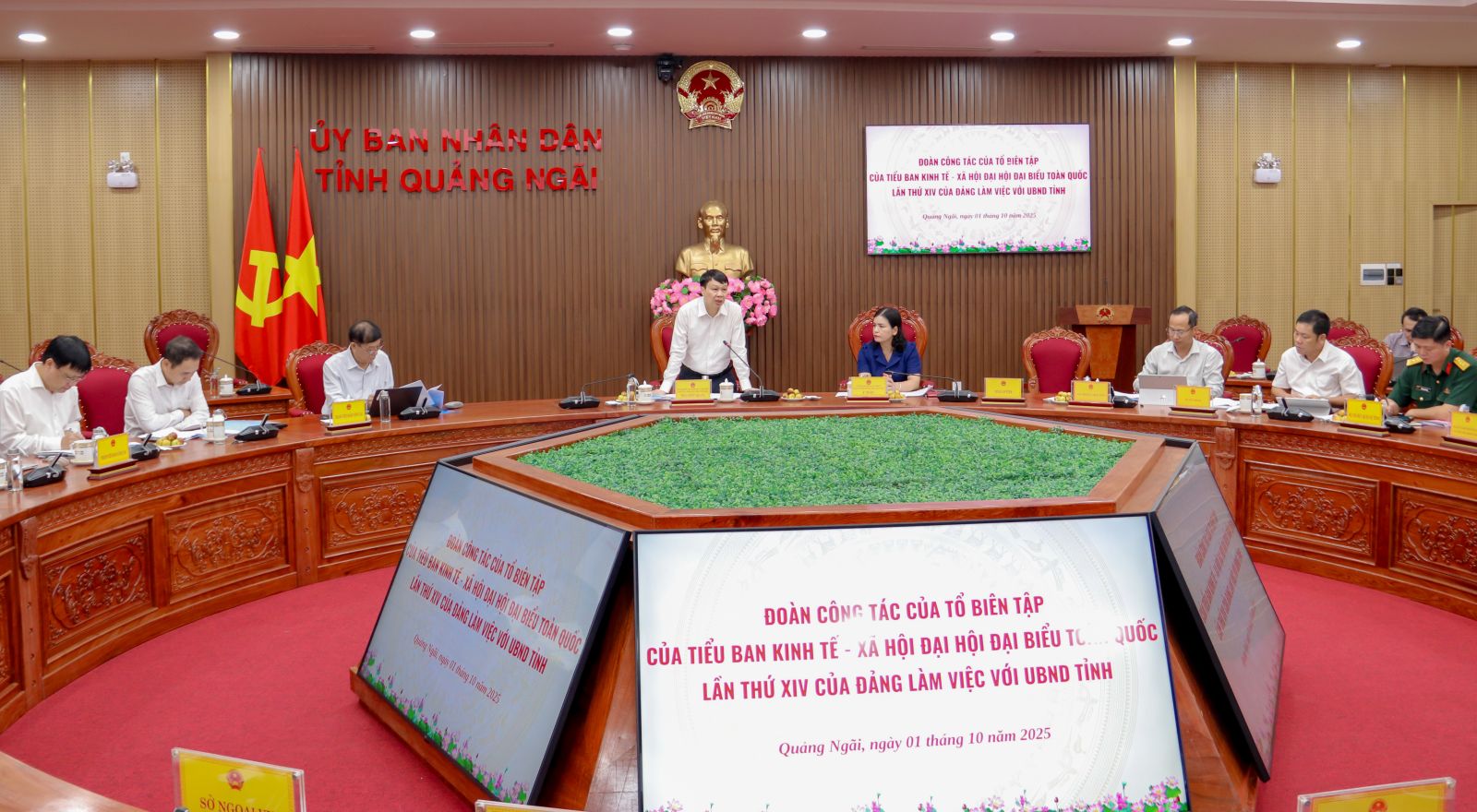 Tổ Biên tập của Tiểu ban Kinh tế - Xã hội Đại hội XIV làm việc với tỉnh Quảng Ngãi