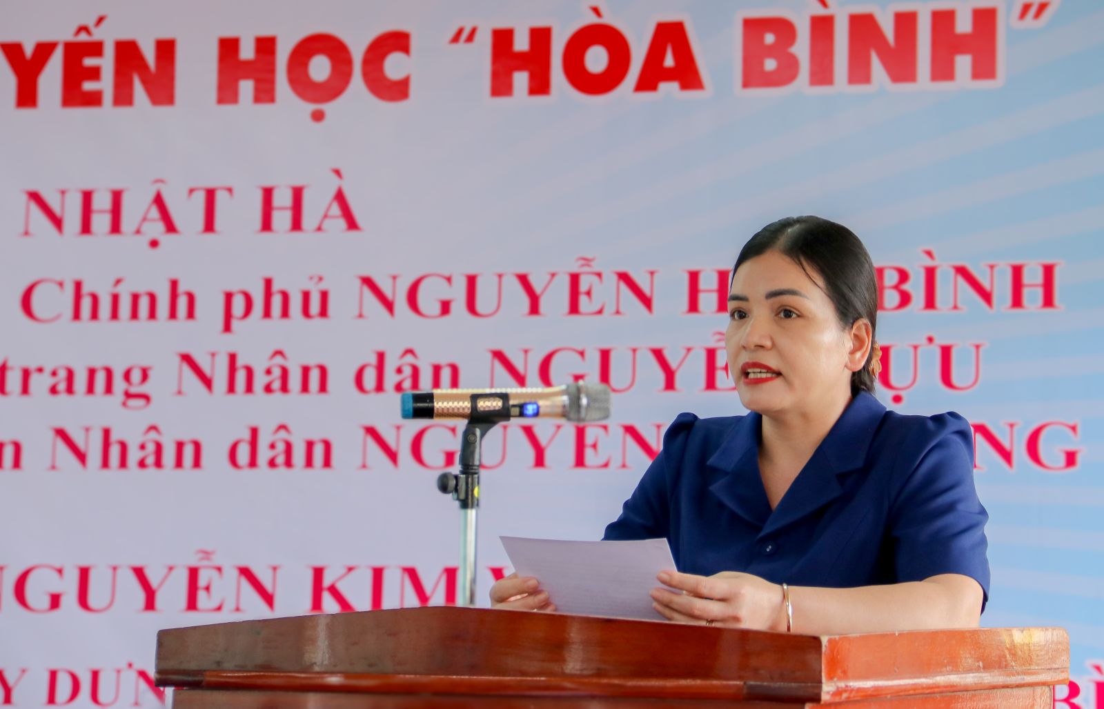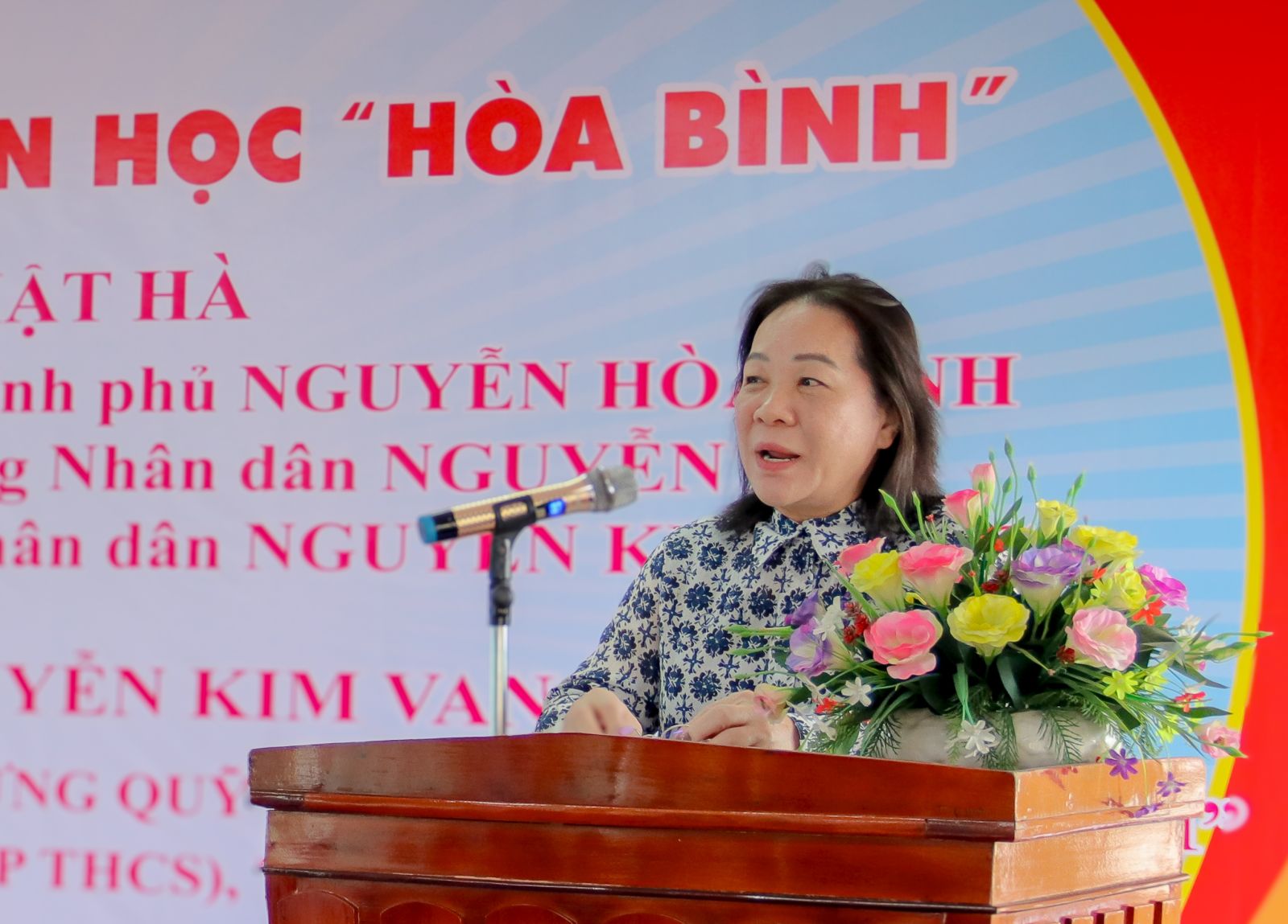 Chia sẻ tại buổi lễ, bà Phùng Nhật Hà, đại diện đoàn công tác của Quỹ Khuyến học “Hòa Bình” cho biết, những ngôi trường mang tên Anh hùng, Liệt sĩ có ý nghĩa đặc biệt, nhắc nhở các thế hệ hôm nay về truyền thống yêu nước, tinh thần chiến đấu và sự hy sinh vì độc lập, tự do của dân tộc. Đồng thời nhấn mạnh, việc quan tâm đến giáo dục, chăm lo cho thế hệ trẻ, khơi dậy tinh thần hiếu học và trách nhiệm của các em chính là cách để tiếp nối và phát huy những giá trị tốt đẹp ấy trong giai đoạn phát triển mới của đất nước.
