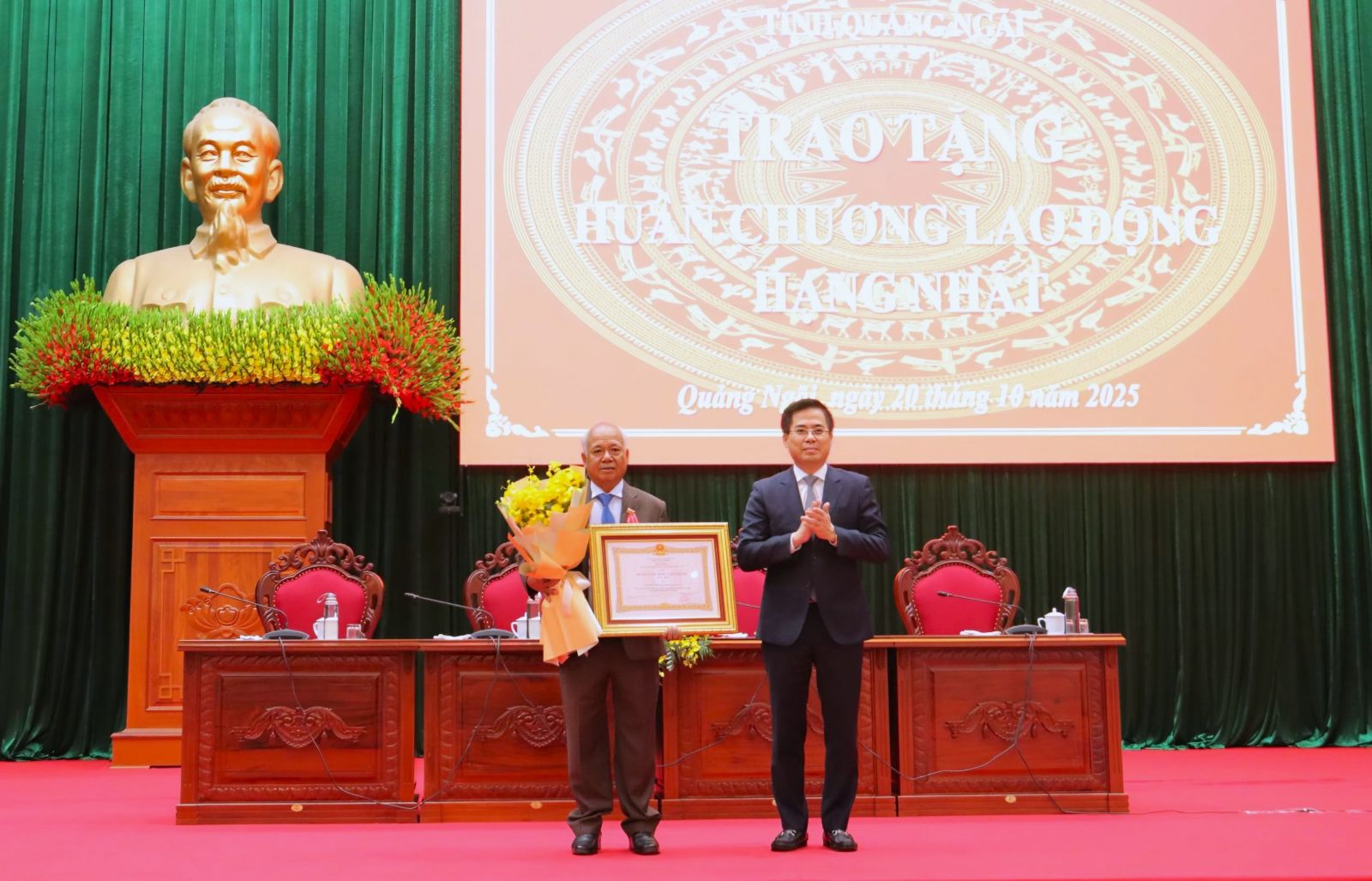 Sáng 20-10, tại Hội trường Ngọc Linh, phường Kon Tum, Chủ tịch UBND tỉnh Nguyễn Hoàng Giang chủ trì Lễ trao tặng Huân chương Lao động hạng Nhất cho đồng chí A Pớt, nguyên Phó Bí thư Thường trực Tỉnh ủy Kon Tum. Dự lễ có Phó Chủ tịch HĐND tỉnh Nghe Minh Hồng; các Phó Chủ tịch UBND tỉnh: Trần Phước Hiền, Nguyễn Công Hoàng, Đỗ Tâm Hiển; lãnh đạo các sở, ban ngành của tỉnh.