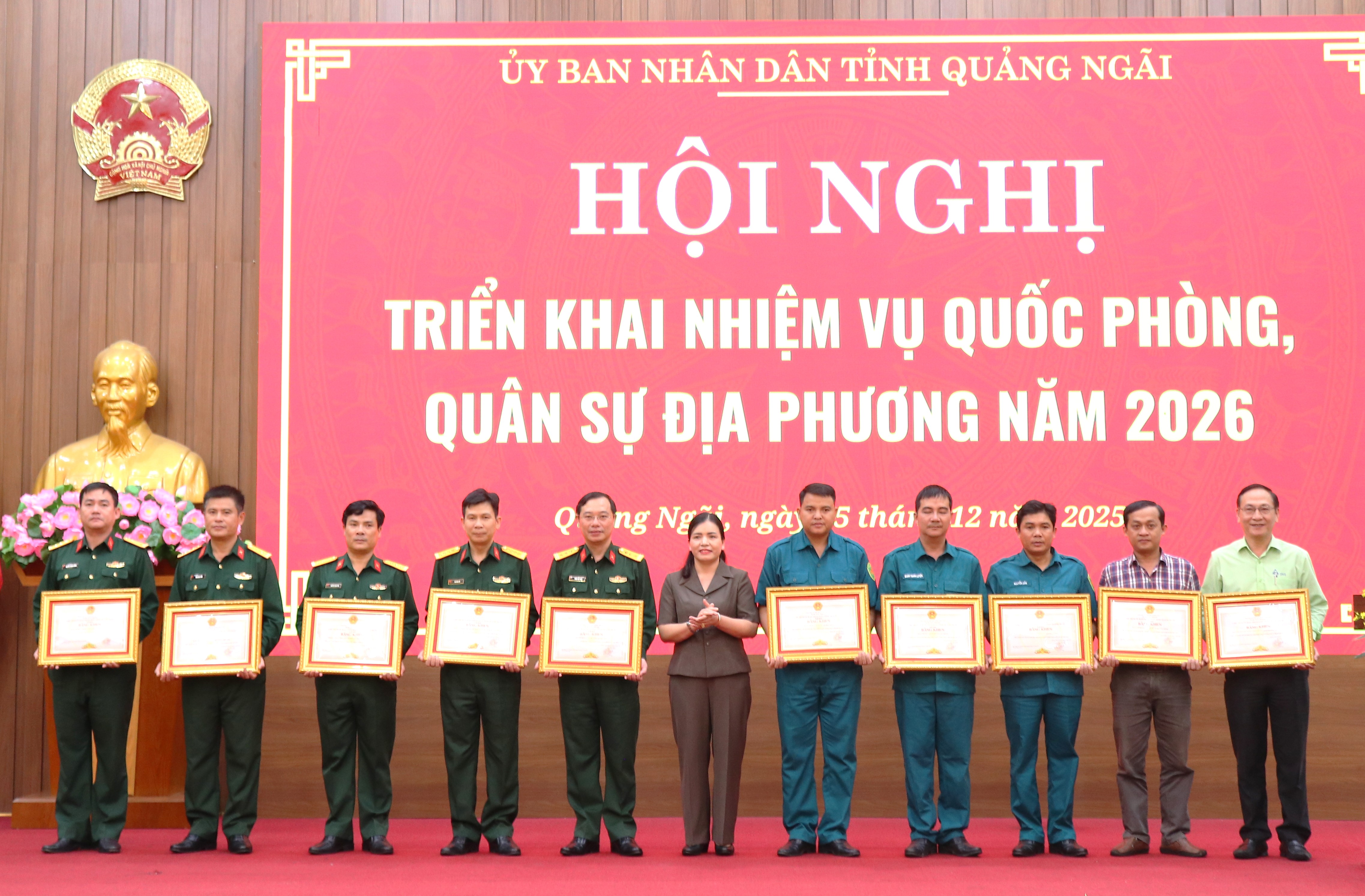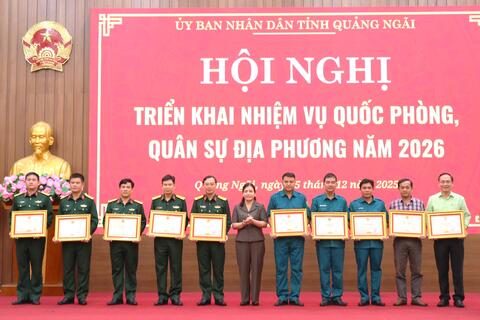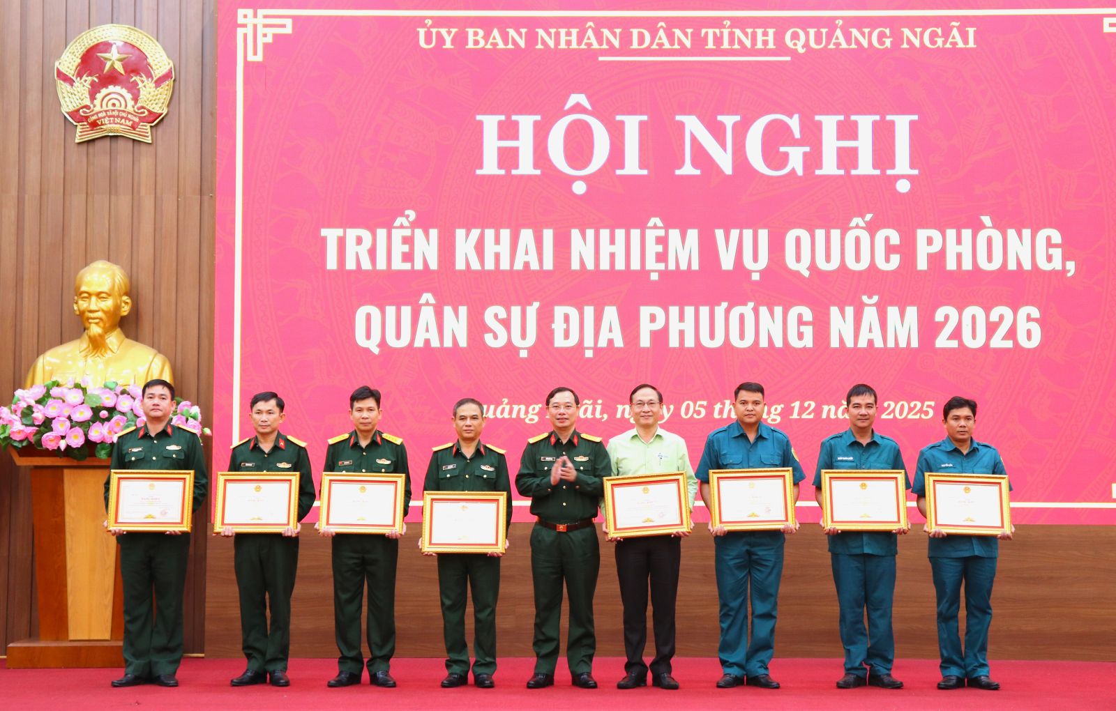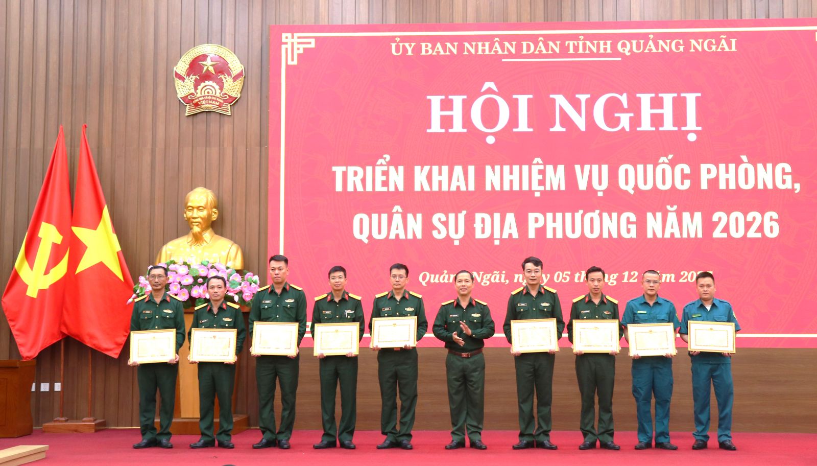 Dịp này, UBND tỉnh phát động Phong trào thi đua với chủ đề “Đoàn kết, kỷ cương, đột phá, sáng tạo, quyết thắng”. Bộ Tư lệnh Quân khu 5 tặng Danh hiệu “Đơn vị quyết thắng”, Danh hiệu “Chiến sĩ thi đua”, Danh hiệu “Chiến sĩ tiên tiến” cho 17 tập thể, 11 cá nhân hoàn thành xuất sắc nhiệm vụ năm 2025. Chủ tịch UBND tỉnh tặng Bằng khen cho 10 tập thể và 10 cá nhân đã có thành tích xuất sắc trong thực hiện nhiệm vụ quốc phòng quân sự địa phương 2025; Bộ CHQS tỉnh khen thưởng 44 tập thể và 123 cá nhân vì thành tích xuất sắc trong thực hiện nhiệm vụ năm 2025.