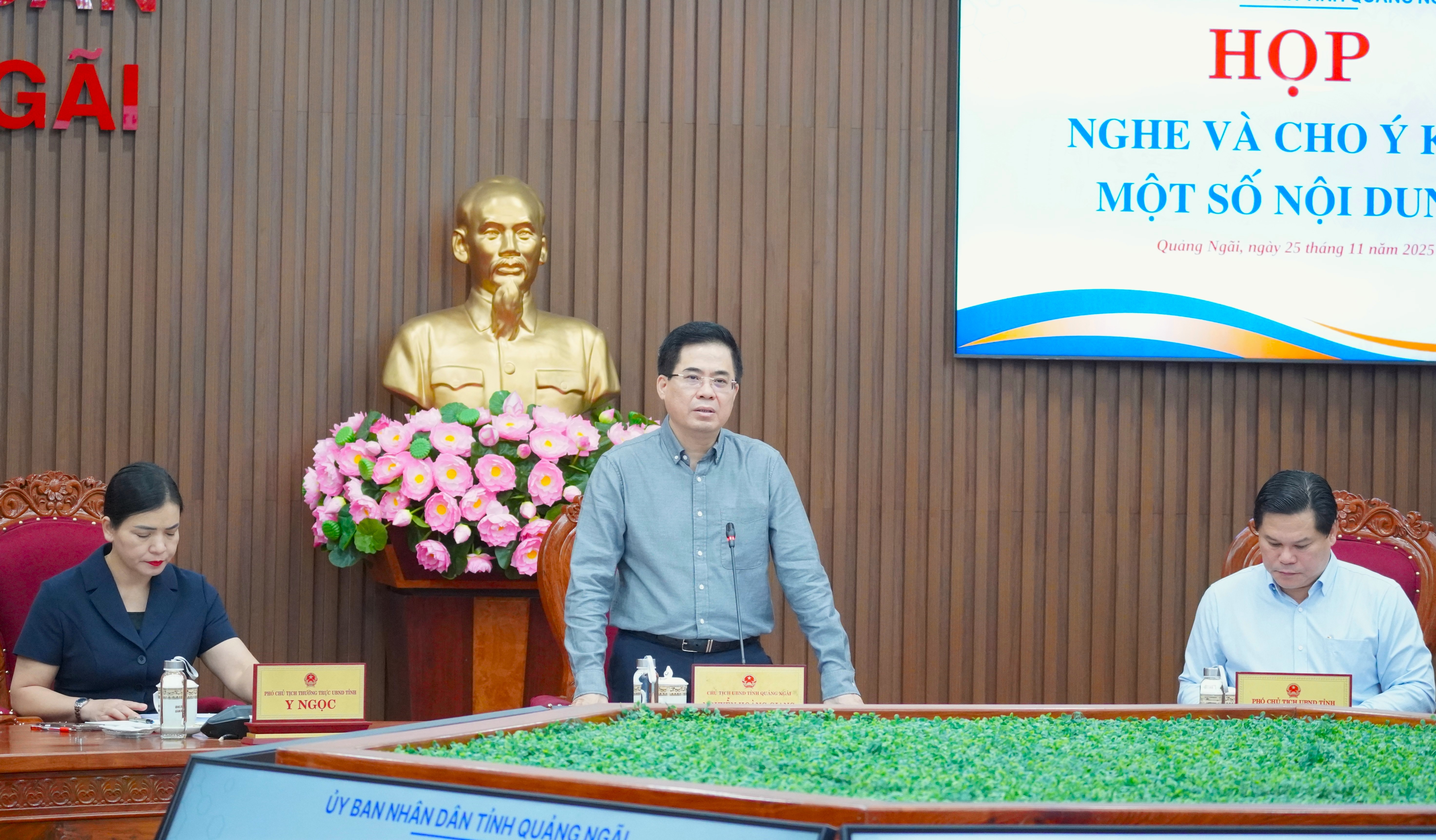 Sáng 25-11, Chủ tịch UBND tỉnh Nguyễn Hoàng Giang chủ trì cuộc họp để nghe và cho ý kiến về dự thảo Kế hoạch phát triển kinh tế - xã hội năm 2026 và một số nội dung trình HĐND tỉnh. Tham dự có các Phó Chủ tịch UBND tỉnh: Y Ngọc, Nguyễn Ngọc Sâm, Trần Phước Hiền, Nguyễn Công Hoàng; Phó Bí thư chuyên trách Đảng ủy UBND tỉnh Phạm Xuân Duệ, cùng các thành viên UBND tỉnh.