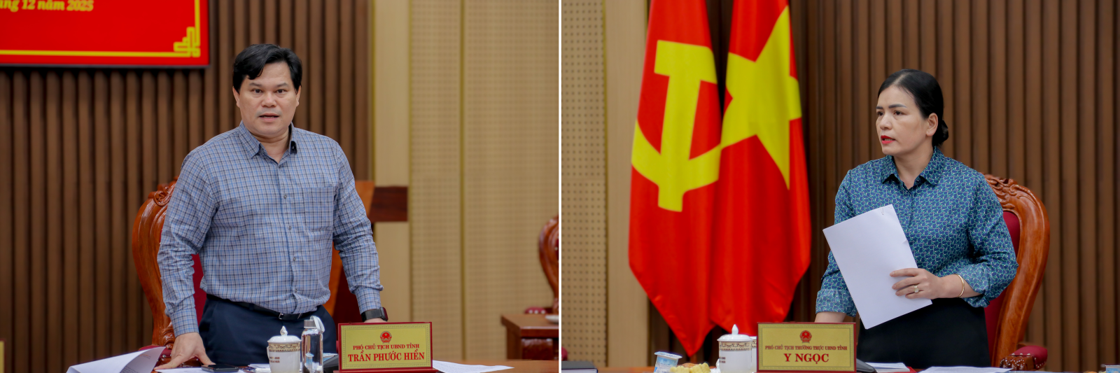 Chiều 11/12, Phó Bí thư Tỉnh ủy, Chủ tịch UBND tỉnh Nguyễn Hoàng Giang cùng các Phó Chủ tịch UBND tỉnh: Y Ngọc, Nguyễn Ngọc Sâm, Trần Phước Hiền chủ trì phiên họp thường kỳ tháng 11 năm 2025 đánh giá tình hình thực hiện nhiệm vụ phát triển kinh tế - xã hội, quốc phòng, an ninh tháng 11, 11 tháng năm 2025 và nhiệm vụ trọng tâm tháng 12/2025. Dự họp có các thành viên UBND tỉnh và lãnh đạo các sở, ngành chức năng của tỉnh.