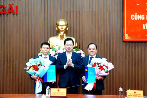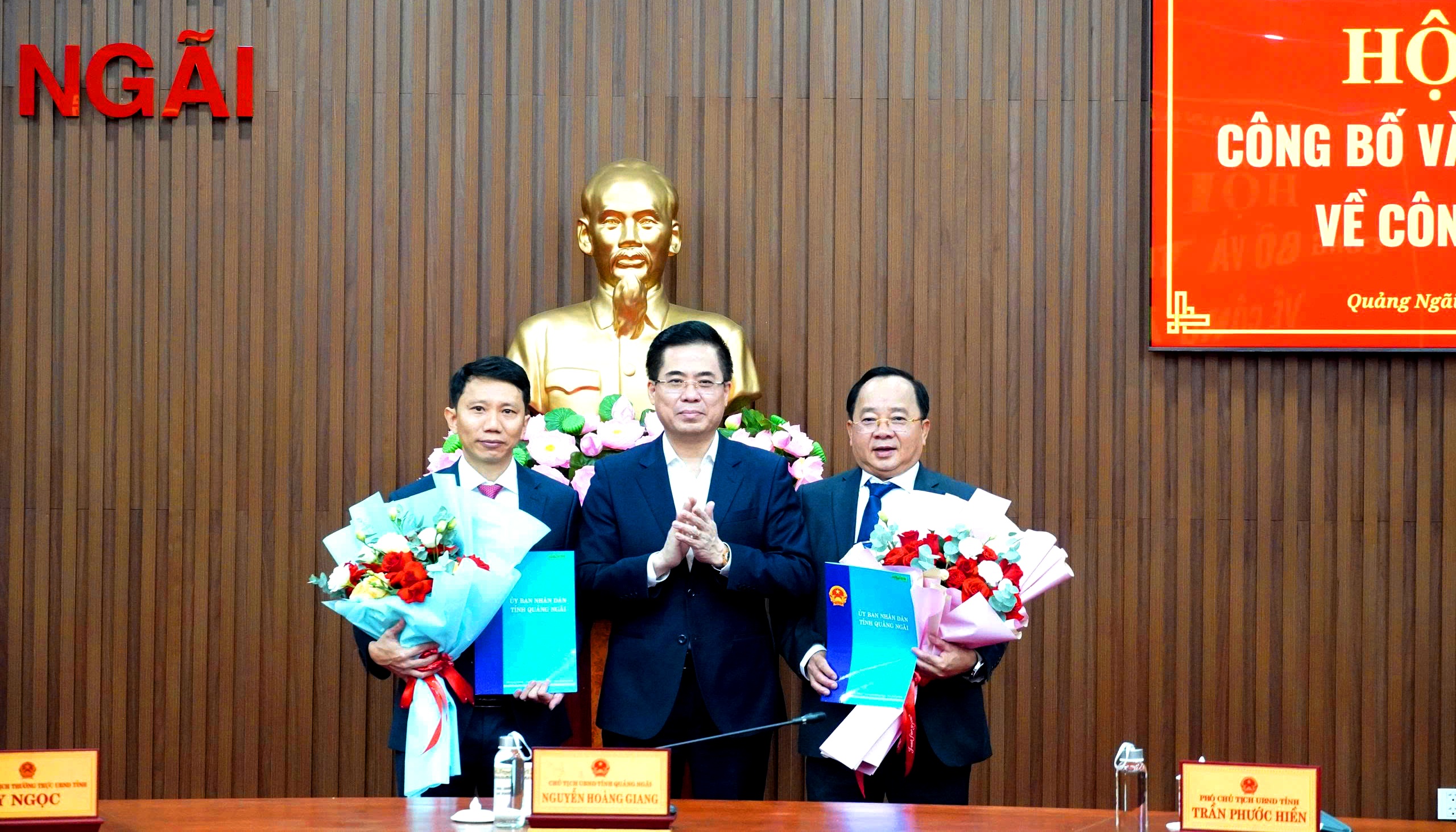 Chủ tịch UBND tỉnh Nguyễn Hoàng Giang ghi nhận và đánh giá cao quá trình công tác, những đóng góp, cống hiến của hai đồng chí Nguyễn Văn Điệu và Thái Văn Tưởng trong thời gian qua. Yêu cầu trên cương vị và nhiệm vụ mới, hai đồng chí tiếp tục nghiên cứu, nắm bắt toàn diện công việc, tập trung ổn định tổ chức để cùng tập thể lãnh đạo đơn vị hoàn thành tốt nhiệm vụ được giao. Đòng thời, đề nghị tập thể cán bộ, công chức hai đơn vị tiếp tục phát huy tinh thần đoàn kết, hỗ trợ đồng chí lãnh đạo mới hoàn thành tốt nhiệm vụ, đóng góp vào sự phát triển chung của tỉnh.