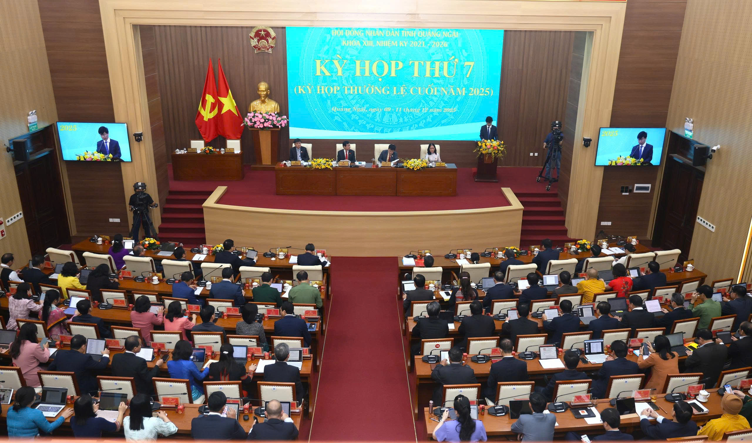 Sáng 09-12, HĐND tỉnh khóa XIII, nhiệm kỳ 2021-2026 tổ chức khai mạc kỳ họp thứ 7 - kỳ họp thường lệ cuối năm 2025 để đánh giá tình hình thực hiện nhiệm vụ phát triển kinh tế - xã hội, quốc phòng, an ninh năm 2025 và 05 năm 2021 - 2025; xem xét, quyết nghị các chỉ tiêu, nhiệm vụ, giải pháp trọng tâm phát triển kinh tế - xã hội năm 2026 và 05 năm 2026 - 2030; đồng thời, thảo luận và quyết định nhiều nội dung quan trọng theo thẩm quyền. Phó Bí thư Tỉnh ủy, Chủ tịch HĐND tỉnh Nguyễn Đức Tuy, các Phó Chủ tịch HĐND tỉnh: Nguyễn Cao Phúc, Nguyễn Thế Hải, Nghe Minh Hồng chủ trì, điều hành chương trình kỳ họp.