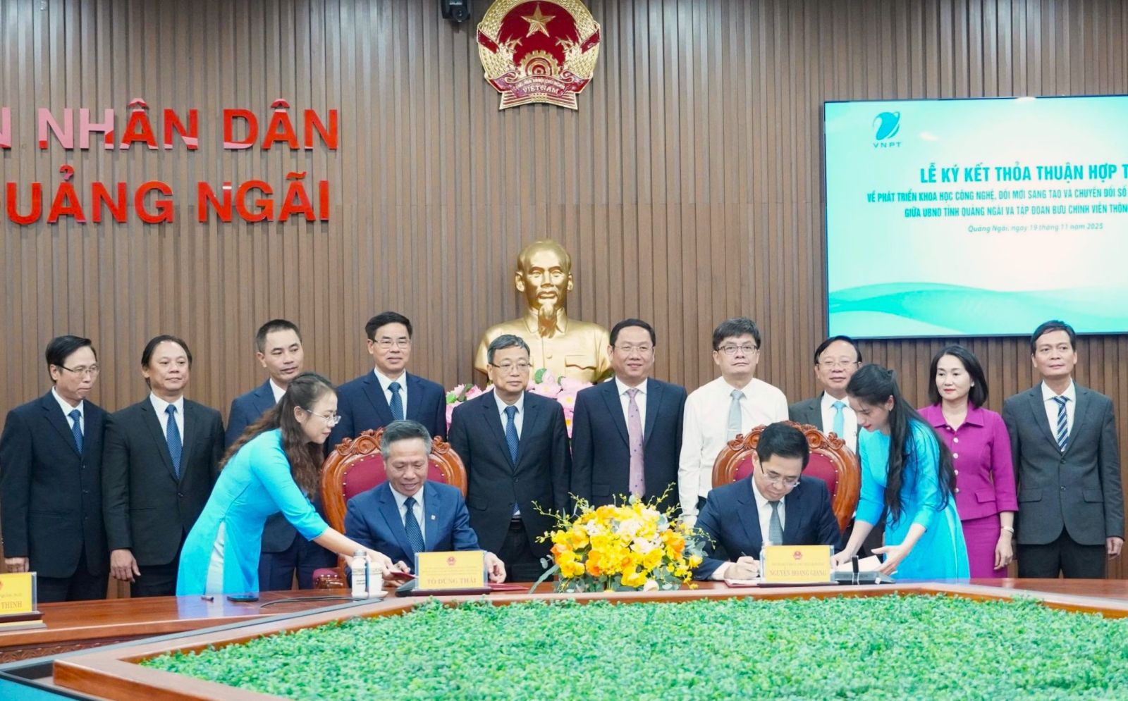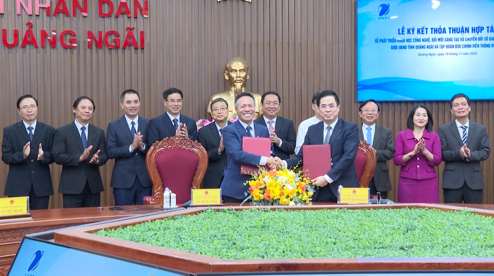 Chiều 19-11, UBND tỉnh Quảng Ngãi và Tập đoàn Bưu chính Viễn thông Việt Nam (Tập đoàn VNPT) đã ký kết Thỏa thuận hợp tác về phát triển khoa học công nghệ, đổi mới sáng tạo và chuyển đổi số giai đoạn 2025-2030.