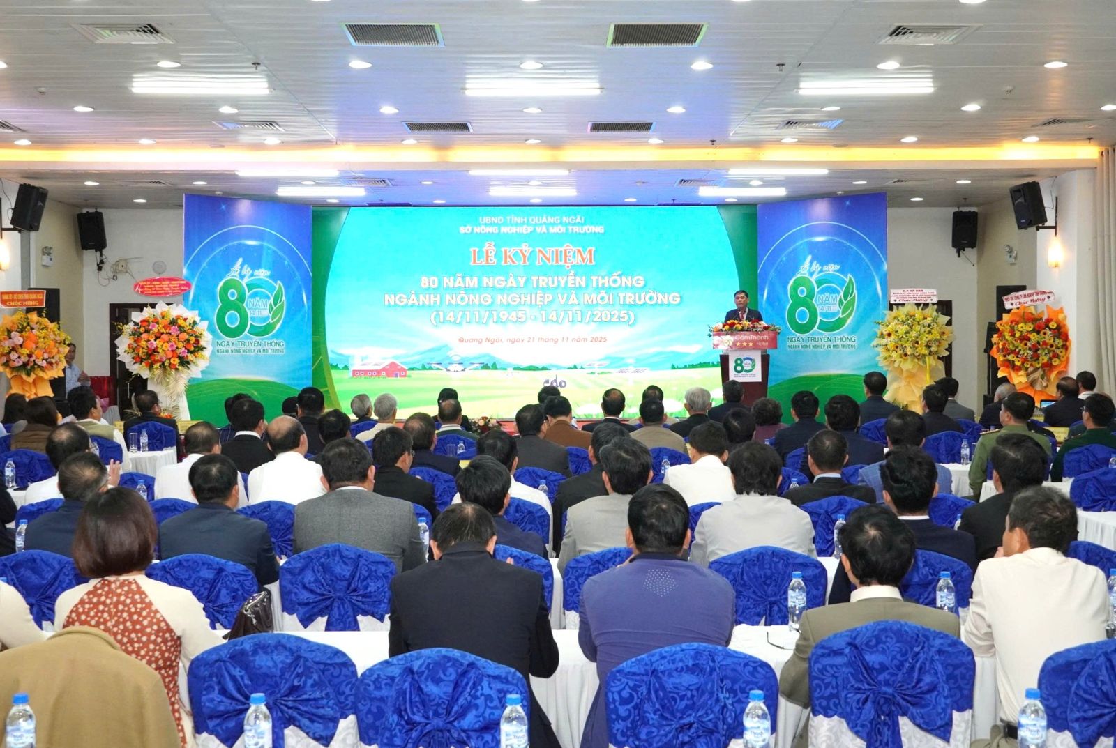 Tại lễ kỷ niệm, các đại biểu đã ôn lại truyền thống vẻ vang của ngành Nông nghiệp và Môi trường. Trải qua 80 năm xây dựng và trưởng thành, ngành Nông nghiệp và Môi trường Việt Nam nói chung và tỉnh Quảng Ngãi nói riêng luôn gắn bó mật thiết với lịch sử dân tộc, luôn khẳng định vị trí, vai trò đặc biệt quan trọng, là trụ đỡ vững chắc của nền kinh tế, là nền tảng của phát triển bền vững.