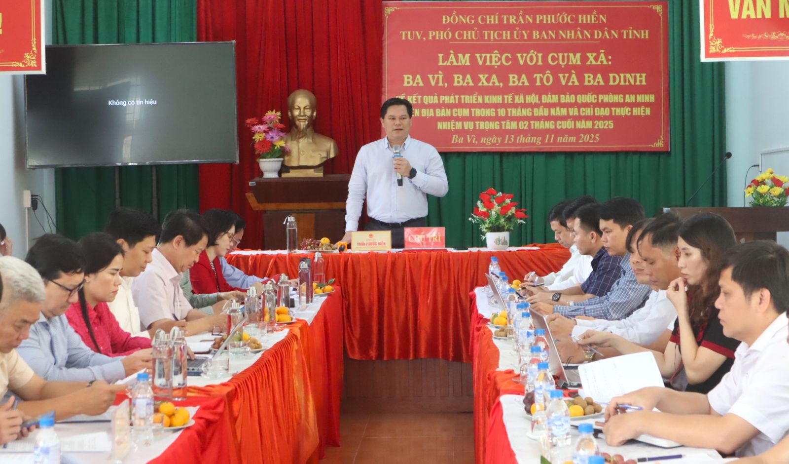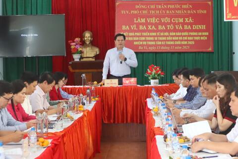 Sáng 13-11, Phó Chủ tịch UBND tỉnh Trần Phước Hiền đã chủ trì buổi làm việc với UBND các xã: Ba Vì, Ba Xa, Ba Tô và Ba Dinh về kết quả phát triển KT-XH, quốc phòng an ninh 10 tháng đầu năm, kế hoạch các tháng cuối năm 2025.