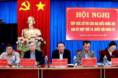 Tại Hội nghị, Phó Chủ tịch Quốc hội Nguyễn Khắc Định đã quán triệt nội dung về kết quả hoàn thiện thể chế về tổ chức bộ máy để thực hiện sắp xếp, tinh gọn tổ chức bộ máy. Phó Thủ tướng Chính phủ Lê Thành Long trình bày Báo cáo tóm tắt của Chính phủ về tình hình tổ chức triển khai thi hành các luật, nghị quyết được Quốc hội Khóa XV thông qua tại Kỳ họp bất thường lần thứ 9.