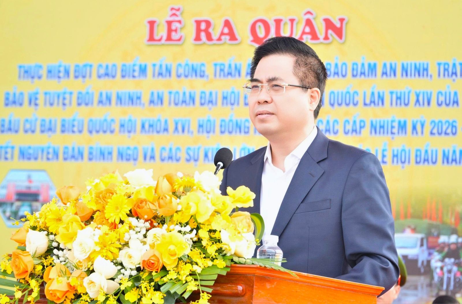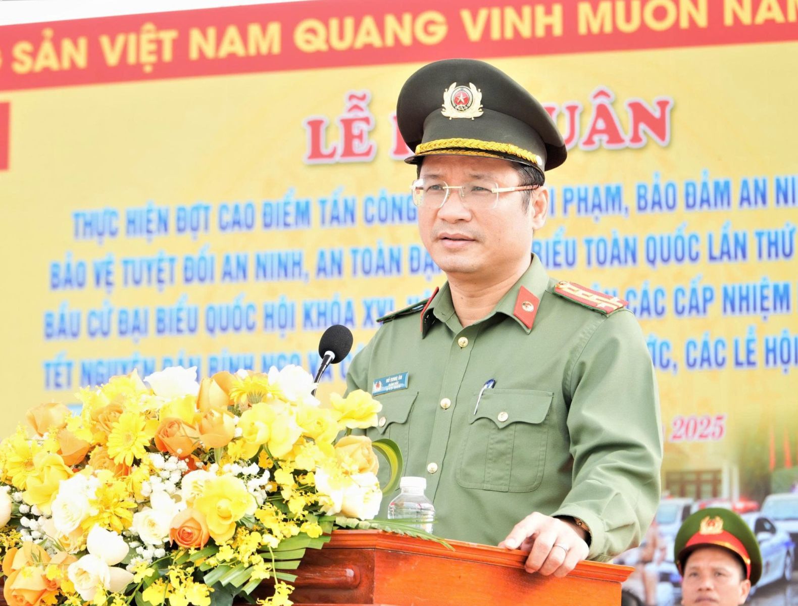 Phát biểu tại lễ ra quân, Chủ tịch UBND tỉnh Nguyễn Hoàng Giang ghi nhận, biểu dương sự nỗ lực, quyết tâm của lực lượng Công an tỉnh trong thời gian qua; đồng thời, yêu cầu Công an tỉnh tiếp tục bám sát sự lãnh đạo, chỉ đạo của Bộ Công an, Tỉnh ủy, Ủy ban nhân dân tỉnh về tấn công, trấn áp tội phạm, bảo đảm an ninh chính trị, trật tự an toàn xã hội, bảo đảm trật tự, an toàn giao thông; tăng cường quản lý vũ khí, vật liệu nổ, công cụ hỗ trợ và pháo, bảo đảm an toàn phòng, chống cháy, nổ; tiếp tục tham gia hỗ trợ Nhân dân khắc phục hậu quả sau bão, lũ. Chủ động nắm, dự báo tình hình, tham mưu, đề xuất các chủ trương, giải pháp bảo đảm an ninh, trật tự thời gian trước, trong và sau dịp Tết và các sự kiện chính trị quan trọng của đất nước.