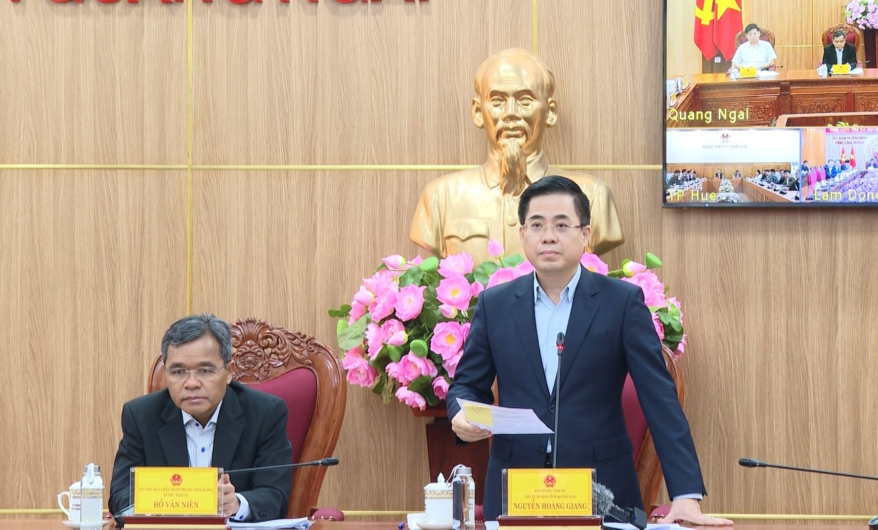 Ủy viên BCH Trung ương Đảng, Bí thư Tỉnh ủy Hồ Văn Niên; Phó Bí thư Tỉnh ủy, Chủ tịch UBND tỉnh Nguyễn Hoàng Giang; Phó Chủ tịch UBND tỉnh Đỗ Tâm Hiển; lãnh đạo các sở, ngành, địa phương liên quan tham dự điểm cầu Quảng Ngãi.