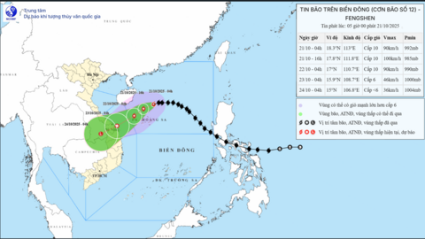 Bão số 12 tiến gần biển Trung bộ, gây mưa lớn diện rộng Theo Trung tâm Dự báo Khí tượng Thủy văn Quốc gia, hồi 4 giờ sáng ngày 21/10, tâm bão ở khoảng 18,3 độ vĩ Bắc – 113,0 độ kinh Đông, cách quần đảo Hoàng Sa khoảng 200 km về phía Bắc Đông Bắc. Sức gió mạnh nhất vùng gần tâm bão cấp 9–10 (75–102 ...