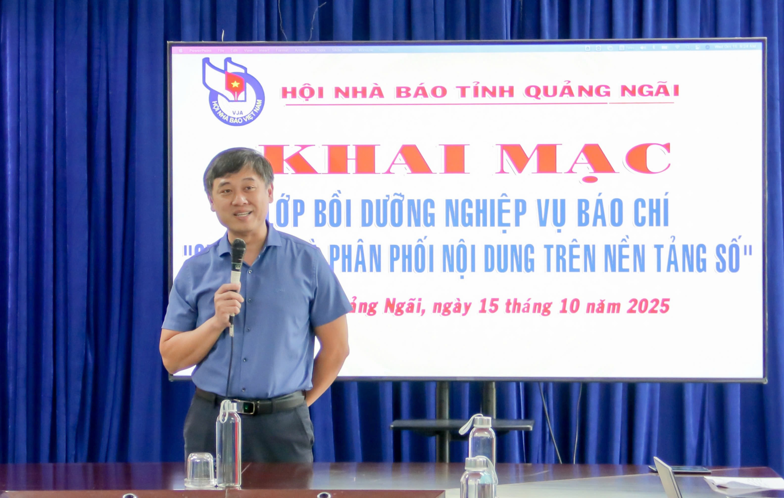 Sáng 15/10, Hội Nhà báo tỉnh tổ chức khai mạc lớp bồi dưỡng nghiệp vụ báo chí “Quản trị và Phân phối nội dung trên nền tảng số”. Tham dự có Phó Trưởng Ban Tuyên giáo và Dân vận Tỉnh ủy Bùi Thị Vui; Tổng Biên tập Báo và Phát thanh, Truyền hình Quảng Ngãi, Chủ tịch Hội Nhà báo tỉnh Huỳnh Đức Minh; cùng lãnh đạo, phóng viên, biên tập viên, kỹ thuật viên các cơ quan báo chí trên địa bàn tỉnh.