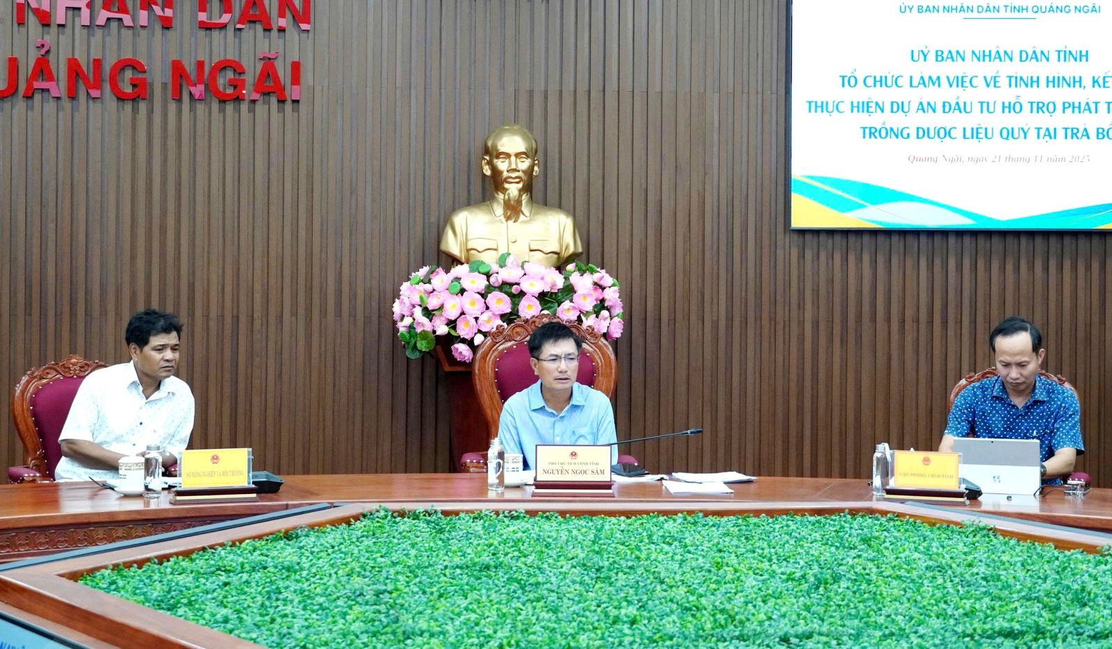 Sáng 21-11, Phó Chủ tịch UBND tỉnh Nguyễn Ngọc Sâm chủ trì cuộc họp với lãnh đạo các sở, ngành, địa phương liên quan về tình hình và kết quả thực hiện Dự án đầu tư hỗ trợ phát triển vùng trồng dược liệu quý tại Trà Bồng.