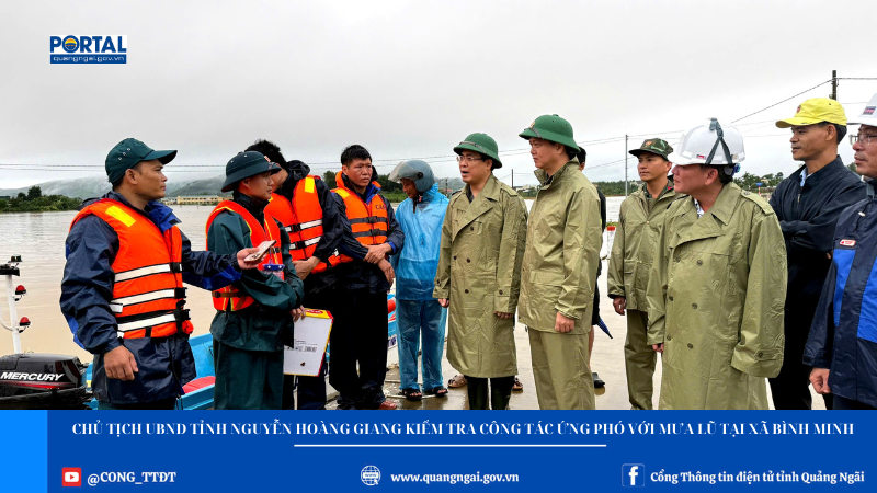 Chủ tịch UBND tỉnh Nguyễn Hoàng Giang kiểm tra công tác ứng phó với mưa, lũ tại xã Bình Minh