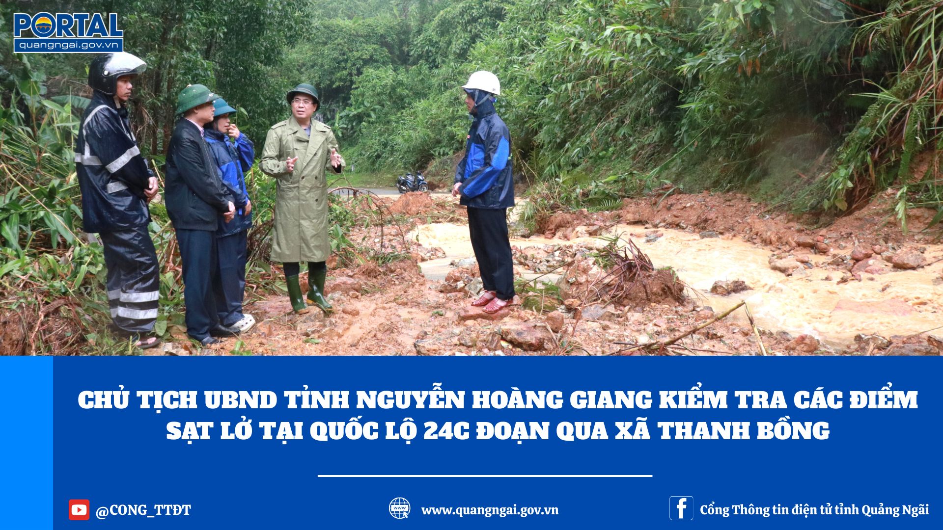 Trước diễn biến phức tạp của mưa lũ gây sạt lở tại nhiều khu vực miền núi của tỉnh, sáng 28-10, Chủ tịch UBND tỉnh Nguyễn Hoàng Giang đã trực tiếp đi kiểm tra thực tế tình hình sạt lở trên tuyến quốc lộ 24C, đoạn qua địa bàn xã Thanh Bồng. Cùng đi có đại diện Lãnh đạo các sở, ban ngành liên quan và chính quyền địa phương xã Thanh Bồng.