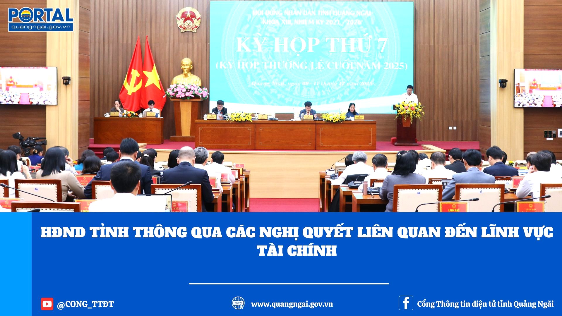Tiếp tục chương trình kỳ họp thứ 7, HĐND tỉnh khóa XIII, nhiệm kỳ 2021- 2026, chiều 09-12, HĐND tỉnh đã thảo luận, cho ý kiến và thông qua các dự thảo Nghị quyết UBND tỉnh trình tại kỳ họp liên quan đến lĩnh vực tài chính. Phó Chủ tịch Thường trực HĐND tỉnh Nguyễn Cao Phúc, cùng các Phó Chủ tịch HĐND tỉnh Nguyễn Thế Hải, Nghe Minh Hồng chủ trì, điều hành chương trình phiên họp.