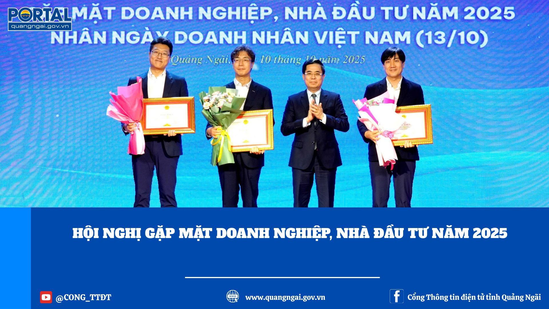 Nhân kỷ niệm 21 năm Ngày Doanh nhân Việt Nam (13/10/2004-13/10/2025), chiều 10-10, UBND tỉnh tổ chức Hội nghị gặp mặt doanh nghiệp, nhà đầu tư năm 2025, nhằm tôn vinh, khen thưởng các doanh nghiệp, doanh nhân tiêu biểu đã có nhiều đóng góp vào sự nghiệp phát triển kinh tế - xã hội tỉnh Quảng Ngãi.