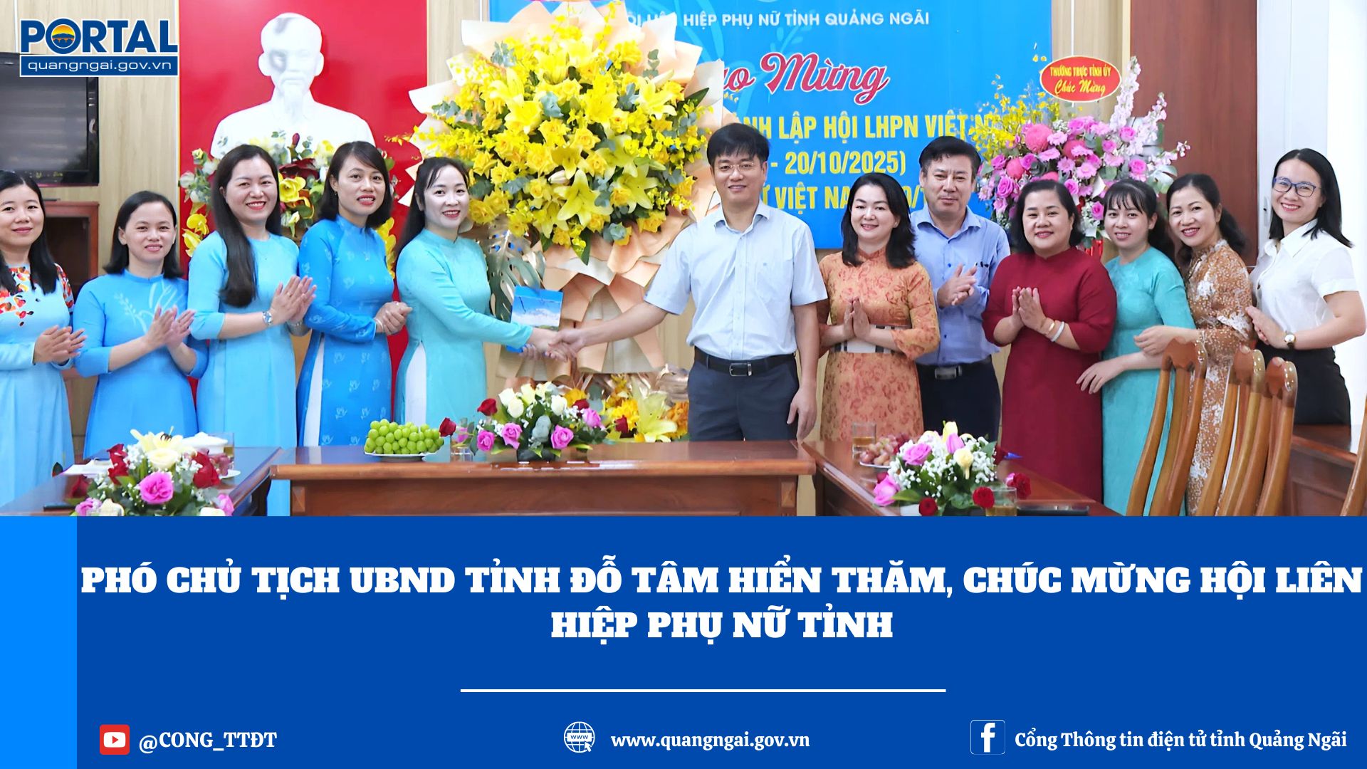 Sáng 16-10, Phó Chủ tịch UBND tỉnh Đỗ Tâm Hiển đã đến thăm, chúc mừng Hội Liên hiệp phụ nữ tỉnh nhân kỷ niệm 95 năm Ngày thành lập Hội Liên hiệp Phụ nữ Việt Nam (20/10/1930-20/10/2025), cùng đi có lãnh đạo Văn phòng UBND tỉnh.