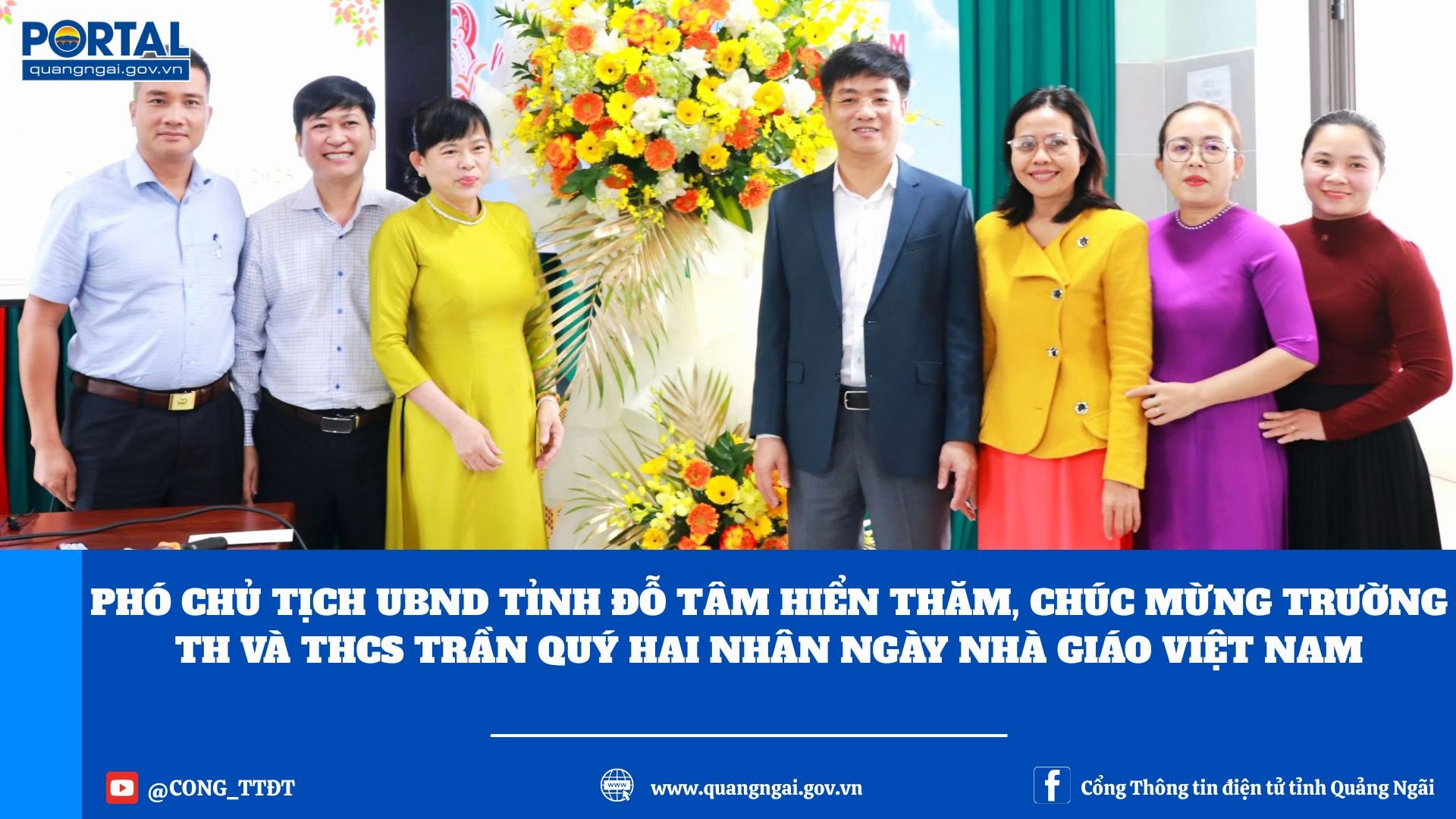 Sáng 20-11, Phó Chủ tịch UBND tỉnh Đỗ Tâm Hiển đã đến thăm, chúc mừng cán bộ, giáo viên Trường Tiểu học và THCS Trần Quý Hai nhân kỷ niệm 43 năm Ngày Nhà giáo Việt Nam (20/11/1982 - 20/11/2025). Cùng đi có đại diện Sở Giáo dục và Đào tạo, Văn phòng UBND tỉnh.