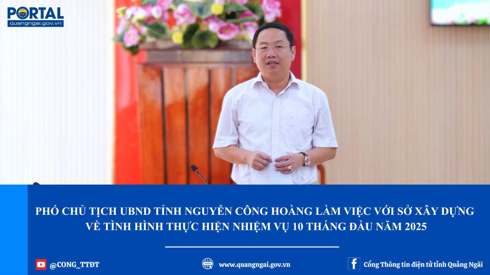 Sáng 14-11, Phó Chủ tịch UBND tỉnh Nguyễn Công Hoàng chủ trì buổi làm việc với Sở Xây dựng về tình hình thực hiện nhiệm vụ 10 tháng đầu năm và kế hoạch 02 tháng cuối năm 2025.
