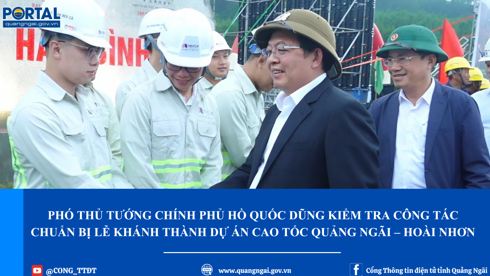 Chiều 18-12, Phó Thủ tướng Chính phủ Hồ Quốc Dũng đã đến kiểm tra công tác chuẩn bị Lễ Khánh thành Dự án Cao tốc Quảng Ngãi – Hoài Nhơn, diễn ra tại khu vực phía Bắc Hầm số 3 của Dự án, thuộc địa phận xã Khánh Cường, tỉnh Quảng Ngãi. Cùng đi với Đoàn có Phó Chủ tịch UBND tỉnh Quảng Ngãi Trần Phước Hiền và lãnh đạo các sở, ngành chức năng của tỉnh.